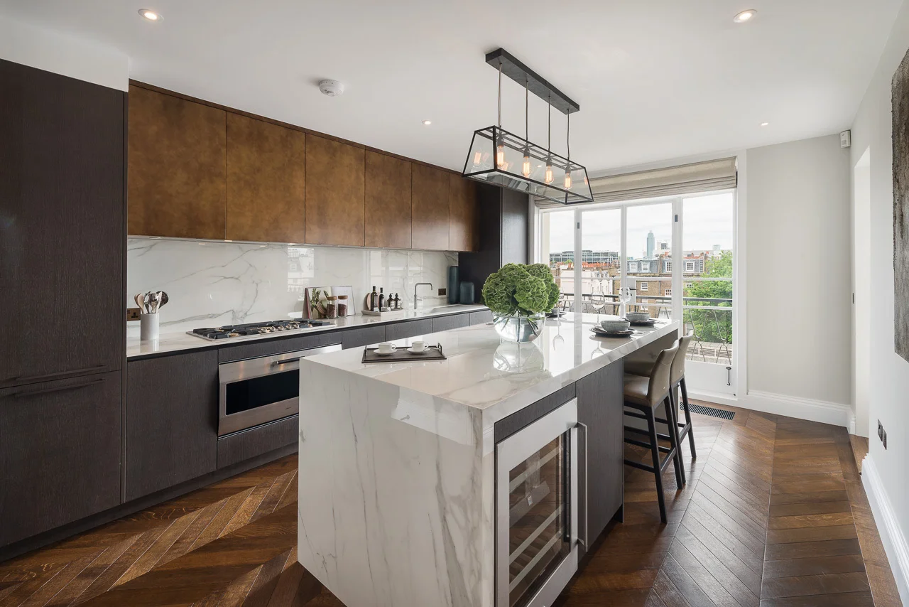 As part of the refurbishment of this Eaton Square apartment, our craftspeople created handmade oak floors, which were then installed with brass boarders and a distinctive burr oak centre piece.