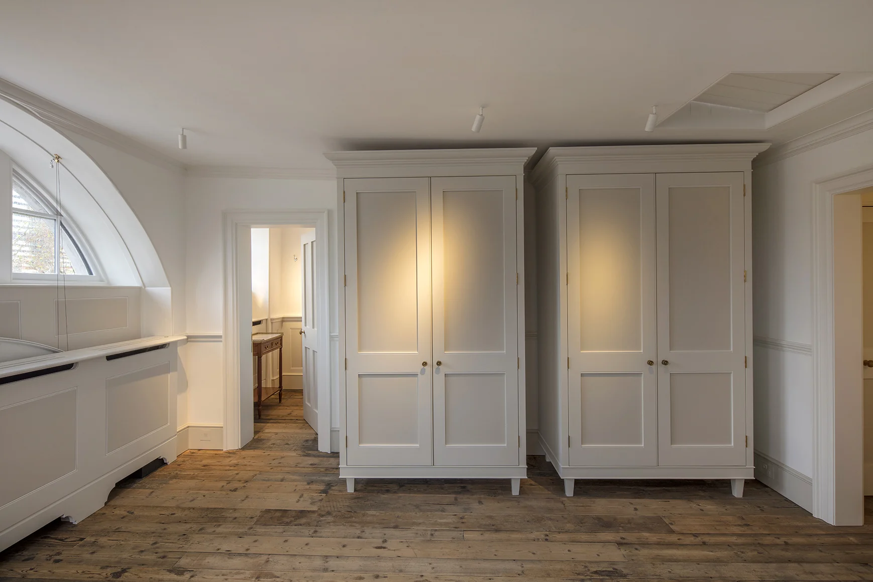 Following procurement, we pre-dried the boards, treating the material and managing the site environment to allow for the installation of solid pineboards over underfloor heating, which we then finished in accordance with clients desired aesthetic.