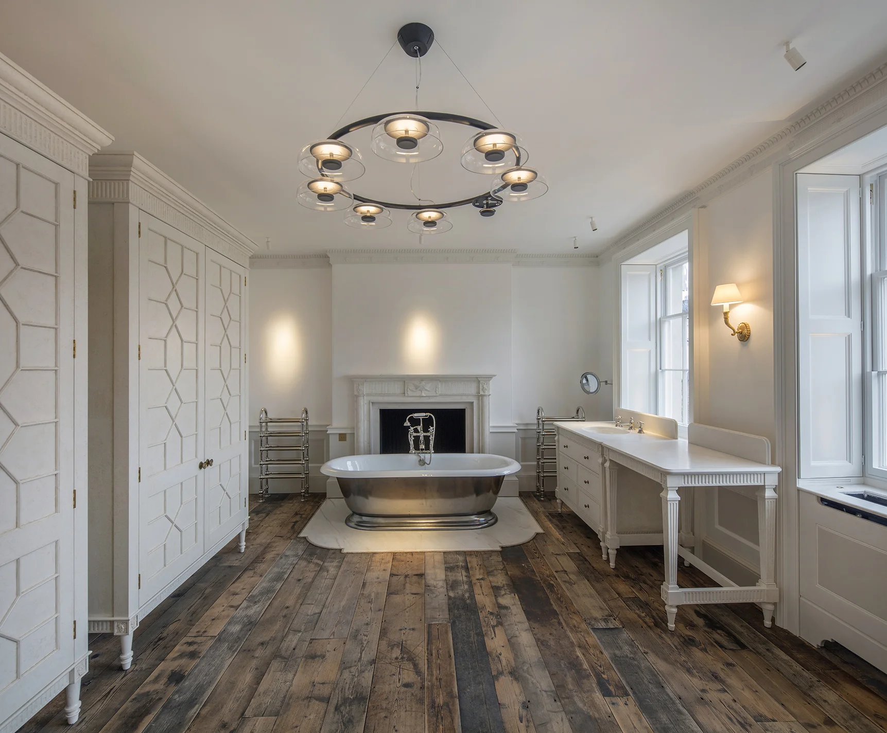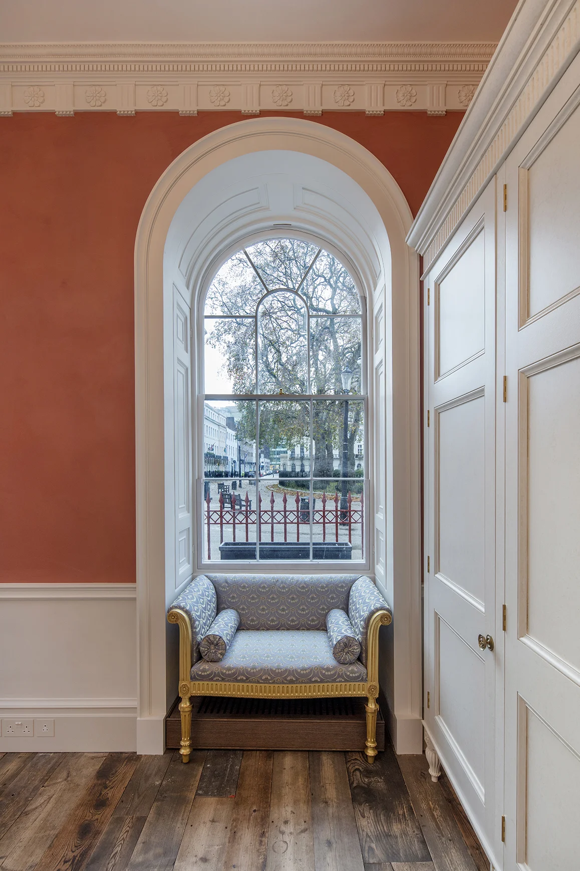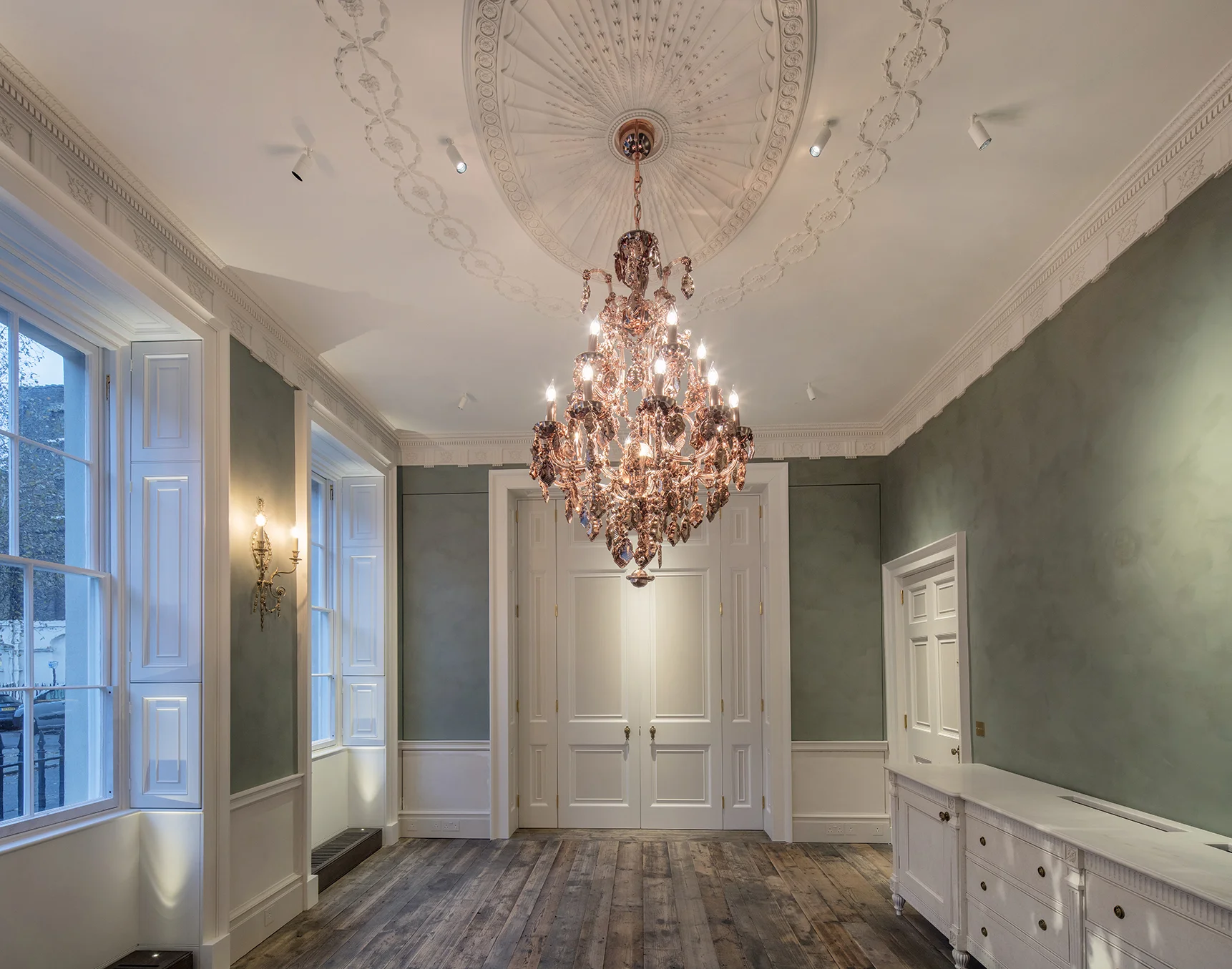 We were involved from concept to completion of the flooring on this Grade I listed private Fitzroy residence, first overseeing the procurement of reclaimed timber boards salvaged from Holland.